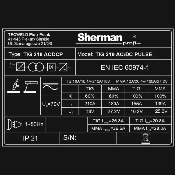 200A TIG 210AC/DC PULSE SHERMAN (TEC5499)