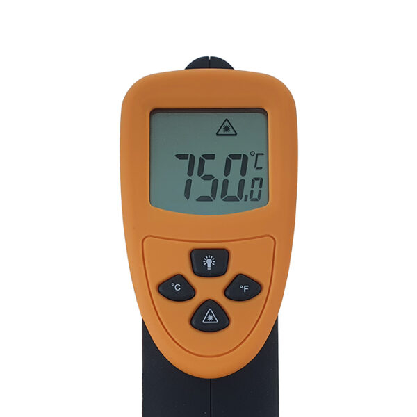 Pirometr na podczerwień 750°C służy do bezdotykowego, zdalnego pomiaru temperatury. Doskonale spisuje się przy pomiarze temperatury gorących przedmiotów i miejsc trudnodostępnych. Niska waga i ergonomiczna obudowa powoduję, że urządzenie jest wyjątkowo łatwe w obsłudze. Laserowa wiązka światła ułatwia precyzyjny pomiar. Podświetlenie wyświetlacza umożliwia użytkowanie pirometru w warunkach słabego oświetlenia. Zasilany jest baterią 9V.