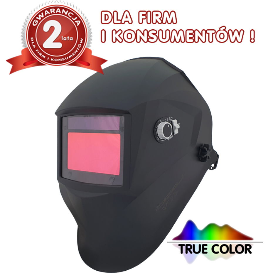 Automatyczna przyłbica spawalnicza Sherman-profi V3b przeznaczone jest do ochrony oczu i twarzy przed iskrami, odpryskami i szkodliwym promieniowaniem podczas spawania oraz szlifowania. Automatyczny filtr zaciemniający po zajarzeniu łuku samoczynnie zmienia się z jasnego na ciemny, a po zakończeniu spawania ponownie staje się jasny. Zastosowanie technologii pełnego odwzorowania kolorów TRUE COLOR zapewnia wysoki komfort pracy. Przyłbica posiada dwa zewnętrzne pokrętła umożliwiające regulację stopnia zaciemnienia od 9 do 13 wg DIN oraz płynną regulację czułości reakcji fotoczujników na intensywność łuku podczas spawania, a także dwa zewnętrzne przełączniki pozwalające na trójpozycyjną regulację czasu opóźnienia przełączania stanu ciemny/jasny i zmianę trybu pracy. Filtr zaciemniający zapewnia pełne bezpieczeństwo spawacza. Wyposażony jest w cztery fotoczujniki, co ma szczególne znaczenie podczas spawania niskimi prądami. Przyłbica V3b posiada niezwykle zaawansowane, komfortowe i ergonomiczne nagłowie, umożliwiające idealne dopasowanie oraz pełną regulację położenia przyłbicy. Specjalny system odchylania zmienia środek ciężkości przyłbicy względem głowy spawacza. Po wyborze funkcji szlifowania na wewnętrznym panelu sterowniczym filtr zaciemniający przełącza się w stan jasny bez opcji regulacji zaciemnienia