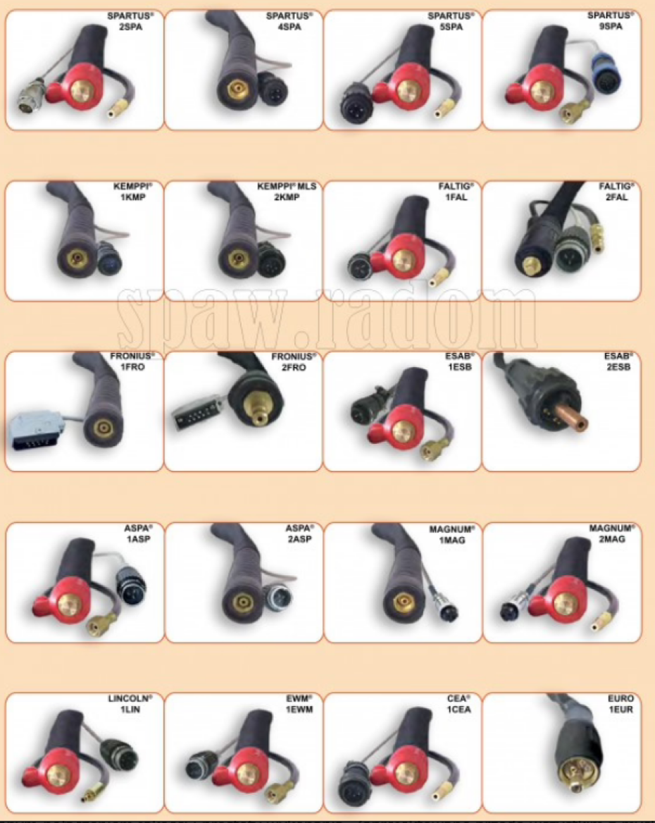 Na zamówienie uchwyty wykonywane są z różnego rodzaju przyłączeniami do urządzeń spawalniczych: